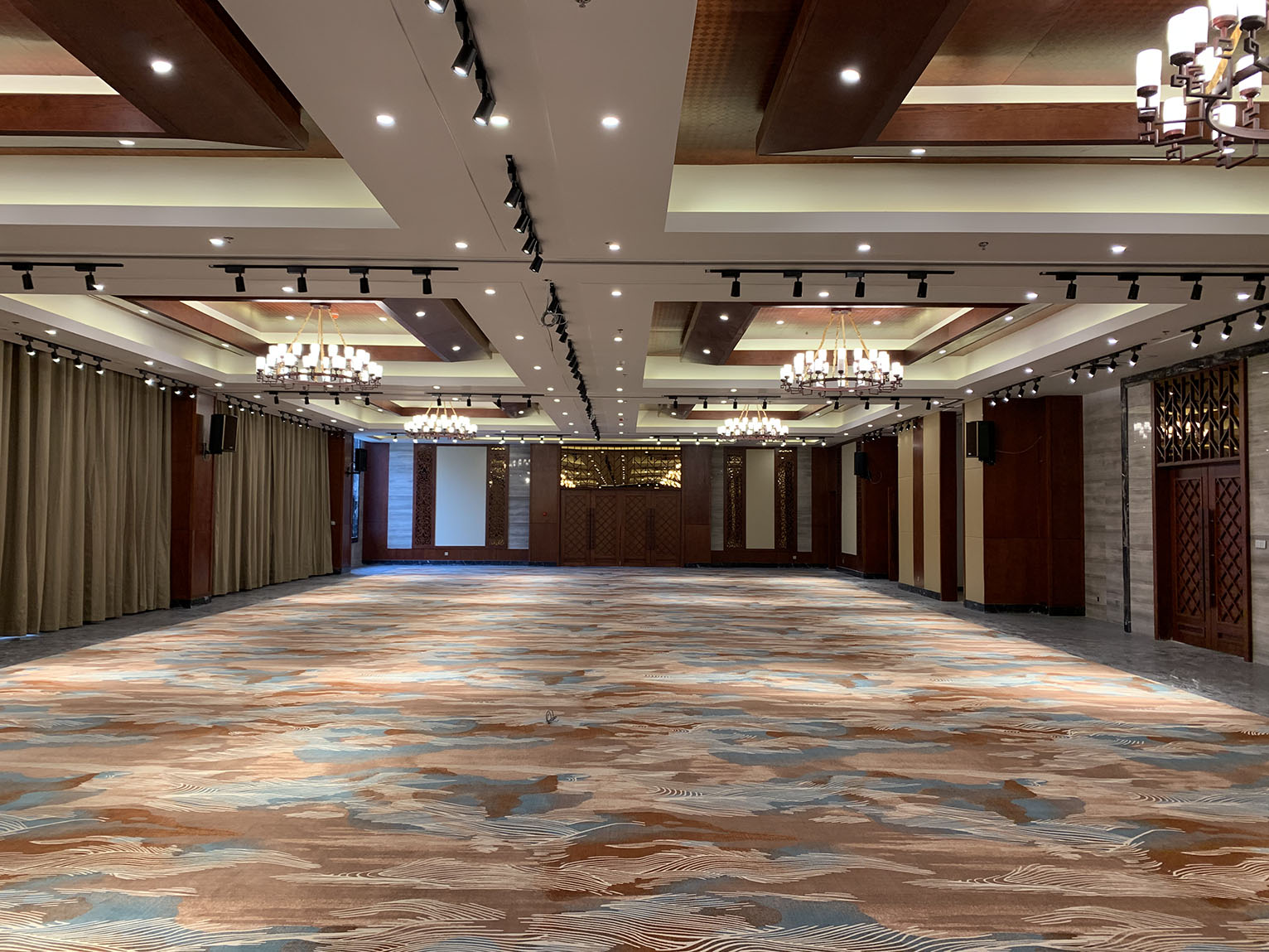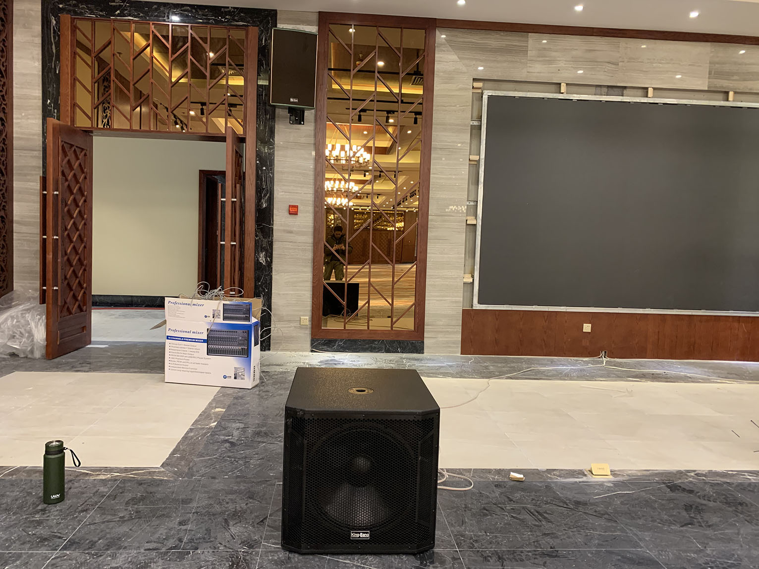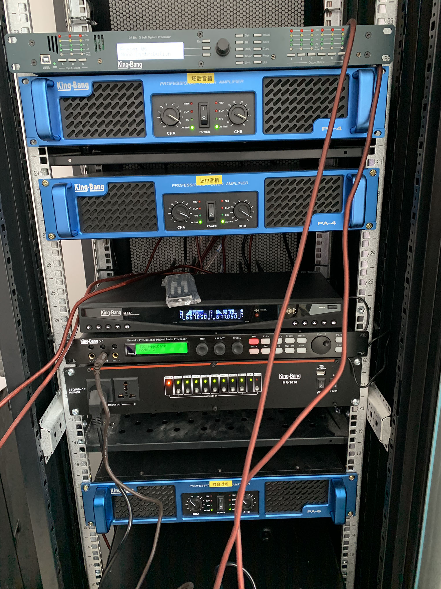 專業(yè)擴聲系統(tǒng)中運用了專業(yè)功放PA系列,以及周邊設(shè)備,宴會廳中的音響采用KB系列以吊掛形式均勻固定安裝在宴會廳內(nèi)的左右兩側(cè)墻體上作現(xiàn)場輔助補聲音箱。該款音箱定向為便攜式/固定安裝打造,音質(zhì)達到高保真級,高抗壓性,可持續(xù)穩(wěn)定動作。完全能滿足多功能會議廳,宴會廳等專業(yè)室內(nèi)擴聲使用。