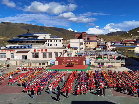 德格縣竹慶鎮(zhèn)中心小學始建于1978年,學校占地面積9112平方米,位于巍峨的雀兒山下,省道217旁,距離縣城147公里。竹慶鎮(zhèn)是四川省甘孜藏族自治州德格縣下轄的一個鎮(zhèn),位于德格縣境西北部,面積1079平方公里,常住人口約0.7萬。其前身為竹慶鄉(xiāng),1962年置竹箐鄉(xiāng),同年協(xié)慶鄉(xiāng)并入,1966年更名竹慶鄉(xiāng),同年改公社,1984年復鄉(xiāng)。柯(柯洛洞鄉(xiāng)) 三(三岔河)公路和馬(馬尼干戈)石(石渠縣)公路過境。2014年1月,撤鄉(xiāng)建鎮(zhèn),轄竹慶、扎東、更達、拉加、八色、檔木、協(xié)慶、擁青、更隆9個村委會,屬純牧業(yè)鎮(zhèn),所在地海拔3980米,境內(nèi)有竹慶寺、協(xié)慶寺兩座著名寺廟。竹慶鎮(zhèn)中心小學現(xiàn)有教職員工 53人,其中專任教師48人,后勤人員5人。教學班17個,共有學生840人。學校以“家”打造文化,培養(yǎng)師生以“愛家”做起,進而升華至“愛國”思想,圖書室、電教室、實驗室齊備,近年來,學校管理水平進一步增強,教育教學質量逐年提升,是一所牧區(qū)雙語特色