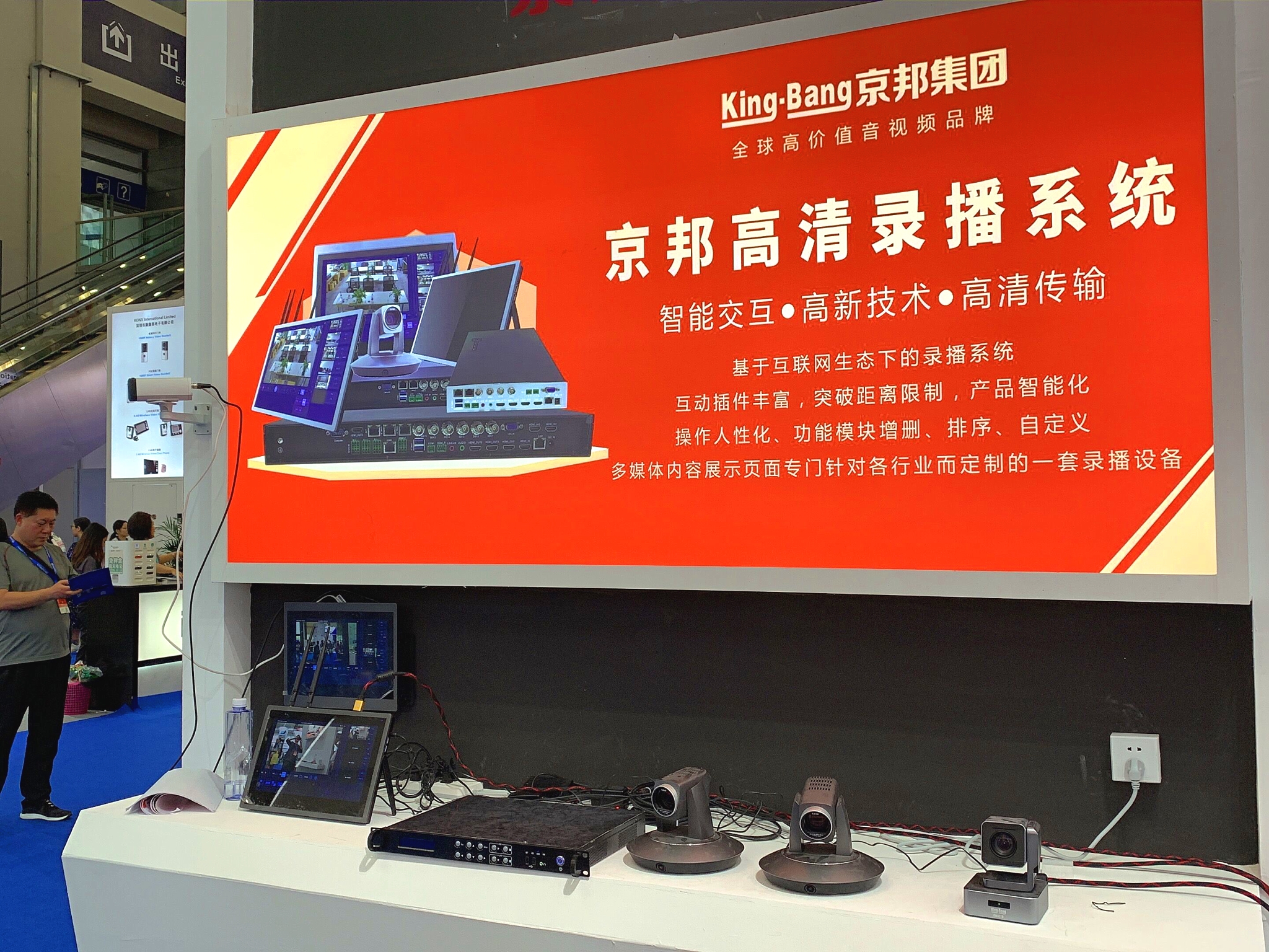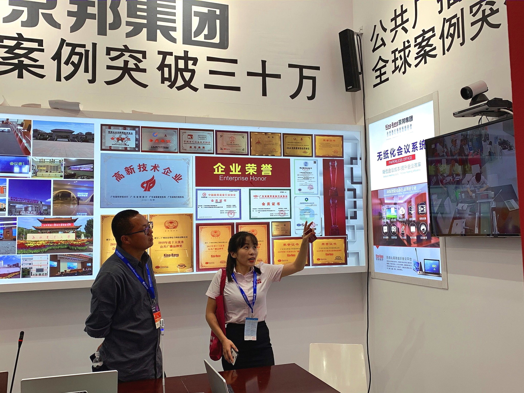 直擊展會現(xiàn)場·業(yè)務(wù)員為客戶講解京邦新視頻系統(tǒng)